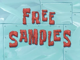 Free Samples is a semi-infamous episode episode of Spongebob SquarePants. In this episode, Plankton distributes gross Krabby Patties to make the customers hate the Krusty Krab. So, SpongeBob tries his best to save the Krusty Krab's reputation.